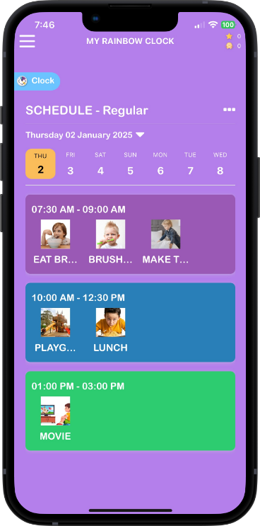 My search for an answer left me empty-handed. So, I decided to create one. With input from professionals and thorough research, I developed My Rainbow Clock: an app designed to help children like mine—children like yours—connect with their day in a meaningful, empowering way. Through this journey, I discovered just how impactful the combination of visual cues for -the “what” and the “when” can be. They engage the brain differently than words ever could, making daily tasks feel more intuitive, less overwhelming and highly emotive. For those tougher, “boring” tasks, adding a fun visual reward can motivate children to tackle these, and over time, this can naturally transition into intrinsic motivation as good habits become established.